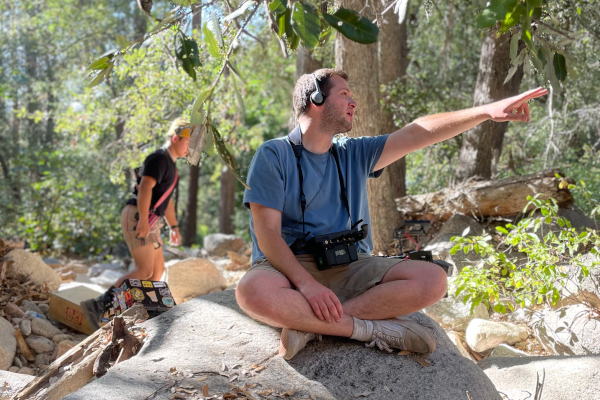 The backwards baseball cap was a must. Maybe it’s because I was a kid in the late ’90s/early 2000s, but that will always be a very cool dude look to me. Our director of photography, Gus Bendinelli, suggested that Jamie should notice Dan putting his arm around the passenger seat headrest while backing up the car. I was so excited when he said that; it’s exactly the kind of casual, subtly masculine gesture Jamie would drool over. David Johnson III, who plays Dan, made a great choice when he chose to casually lean against a tree while advising Jamie on how to build a tent. Isaac understood what kind of impression little gestures like that would make on Jamie. Later that same day, he suggested that Jamie also lean against a tree while offering his own advice to Dan.