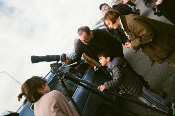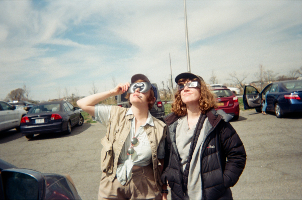 The cast was wrapped, more or less, by lunchtime, but everyone stuck around, eager to see if we could pull off the eclipse shot. Finished with the coverage, we packed up Gabe’s ARRI Alexa and set up my humble Sony FS-100, a decade-old camera I could afford to sacrifice if something went horribly awry with the sensor. We installed the filter, pointed it at the sun, and waited. I’d brought a small collection of eclipse glasses from the “Great American Eclipse of 2017,” while some of our merry band had their own, ensuring enough eye protection to go around when the show began in earnest. Bit by bit, the adjacent parking lot began to fill up, creating an ad hoc tailgate with Brooklynites from diverse walks of life: a family of orthodox Jews idled outside their Honda Odyssey beside a Muslim family in a luxury sedan. A pair of Russian men, already in a celebratory mood, cracked beers in their folding beach chairs (and helped themselves, at our insistence, to food from the craft services table). Teenagers cavorted on the fringes of the lot, play-fighting and shouting. At one point, a flight attendant, nattily dressed in her uniform, pulled over to catch a glimpse of the eclipse on her way to work at nearby JFK Airport.