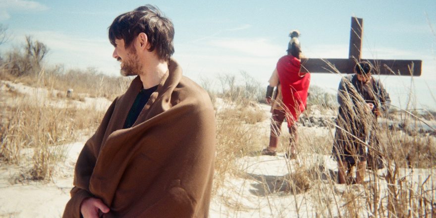 The eclipse was “scheduled” for 3 p.m. that afternoon, giving us all morning into midday for coverage. Our expert costume designer, Nell Simon, used her customary skill and cleverness to dress a small ensemble of nine: seven “weeping Jews” in various colorful fabrics, Jesus Christ in a humble loincloth, and a Roman centurion in armor rented from a California costume house. The foam crucifix, built by art director Grant Stoops the year prior, was still at my apartment, waiting for its encore in the film’s climactic scene. Though the beach itself is somewhat small, we managed to “cheat” a wider shot of the cross with a foot-long model – purchased from a Catholic website that still sends me emails – by jamming it in a sandy hill and shooting from behind.