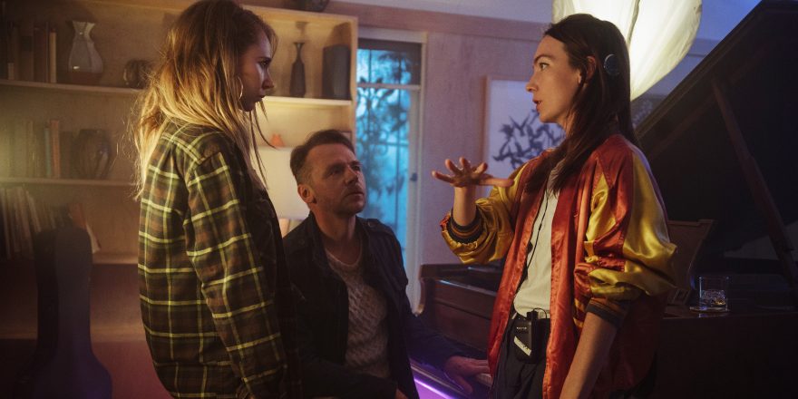 Featured image shows Katharine O’Brien (left) with Juno Temple and Simon Pegg on the set of Lost Transmissions. Image by Elizabeth Kitchens, courtesy of Katharine O’Brien.