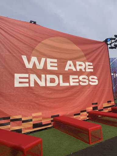 The festival’s signage is inescapable and perplexing. “GOODBYE REALITY, HELLO INTERSECT,” one sign screams. According to another, “Infinity Stage is where the infinite unravels into a sonic landscape conducted by awesome musical acts.” The most confusing — and vaguely threatening — sign says “WE ARE ENDLESS” superimposed over an orange sun. Intersect has really leaned in to its chaotic, apocalyptic energy — it seems positively in awe of a future that involves a lot of chain link fences and dark, gloomy tents.
