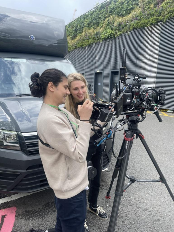 In discussions with cinematographer Xenia Patricia (pictured above with focus puller Alex Tan), I pondered how best to capture these spaces, devoid of all the action and spectacle I had once imagined unfolding within them. Thinking back to my previous visit, I recalled the aimlessness with which I stood and gazed around each unremarkable California locale. Together, Xenia and I devised a series of searching camera movements that she would perform in each location, keenly panning and zooming into the nothingness of empty space.
