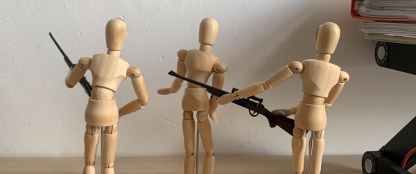So, I was good to go. It was crude, but it worked. In a way. With cotton wool buds for rifles. And a clean takeaway container for a wooden table. I used this method for shooting the proof-of-concept short for my new movie, Betrayal.