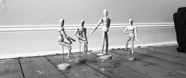 I bought a set of artist’s lay figures, which could be manipulated in different positions and help block out the scenes. Actors: check.
