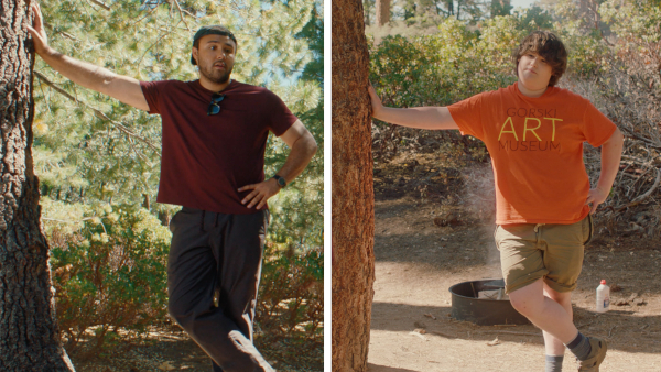The backwards baseball cap was a must. Maybe it’s because I was a kid in the late ’90s/early 2000s, but that will always be a very cool dude look to me. Our director of photography, Gus Bendinelli, suggested that Jamie should notice Dan putting his arm around the passenger seat headrest while backing up the car. I was so excited when he said that; it’s exactly the kind of casual, subtly masculine gesture Jamie would drool over. David Johnson III, who plays Dan, made a great choice when he chose to casually lean against a tree while advising Jamie on how to build a tent. Isaac understood what kind of impression little gestures like that would make on Jamie. Later that same day, he suggested that Jamie also lean against a tree while offering his own advice to Dan.