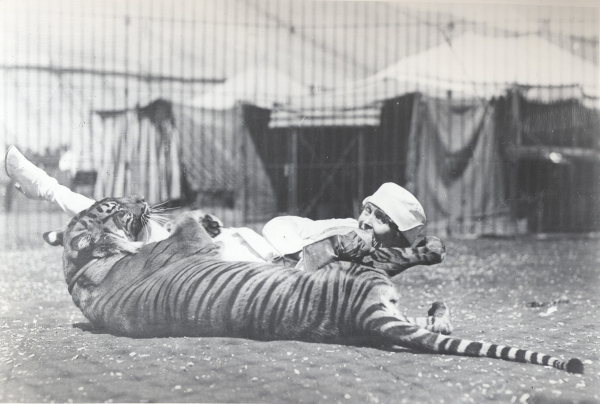 There was a woman who for years played what I’ll call the Ultimate Game of Trust. Her name was Mabel Stark, she was born in Tennessee in 1888 (or 1889, depending on which records you read), and she’s the subject of my latest documentary, Mabel, Mabel, Tiger Trainer. Mabel grew up with little, if any, reason to trust the people who were supposed to protect her. She felt abandoned when her parents died, was most likely abused in her own home, and was publicly betrayed by her siblings. She would marry men who drank or stole money. Is it any wonder she turned to tigers to trust?
